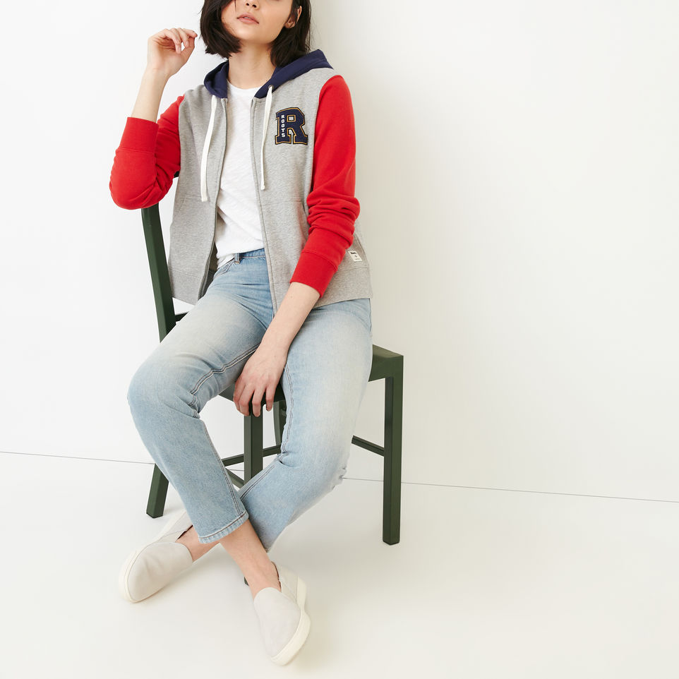 A varsity-inspired update of our classic full-zip hoody, our Varsity Chic Hoody features a chenille R at the left chest.