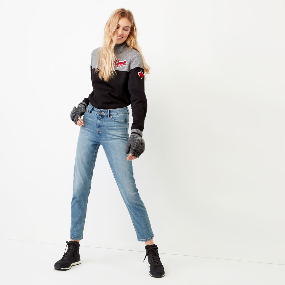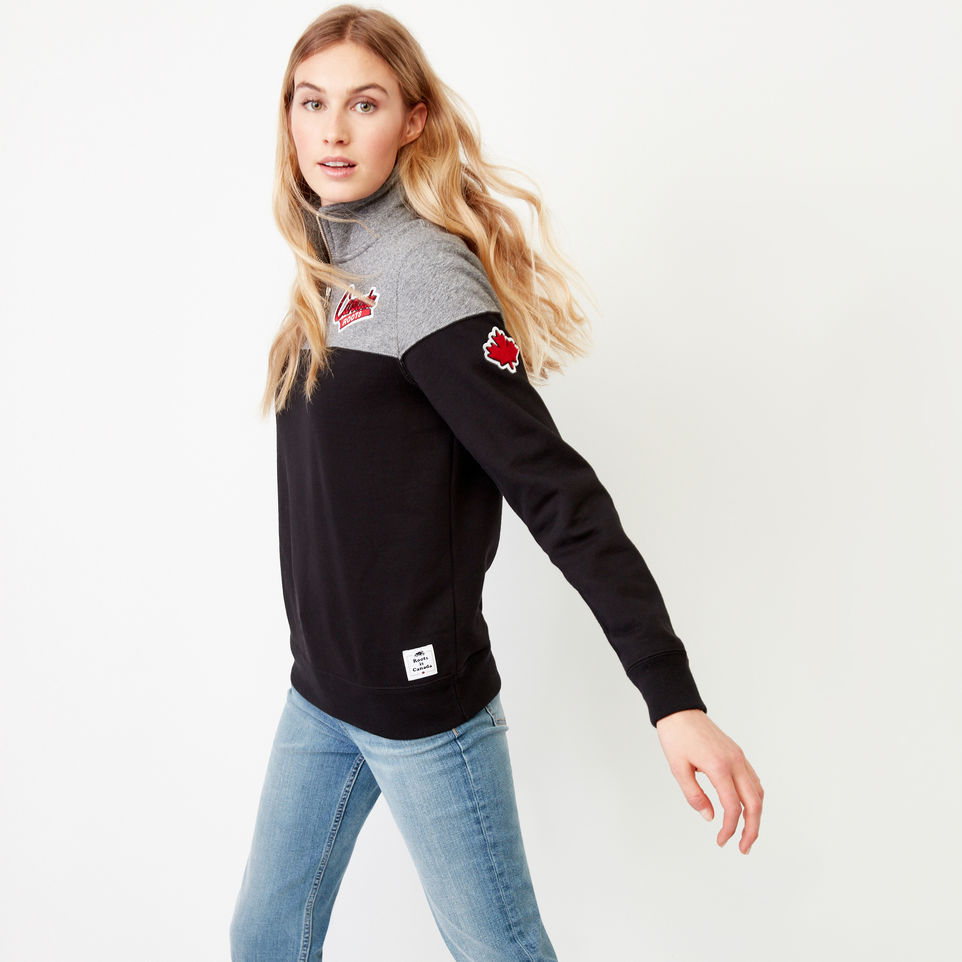 From the Canada Collection by Roots™, our Canada Zip Stein is designed and made in Canada and features a chenille, felt and embroidered logo. This style is made from our signature fleece with a colourblocked design and classic fit.