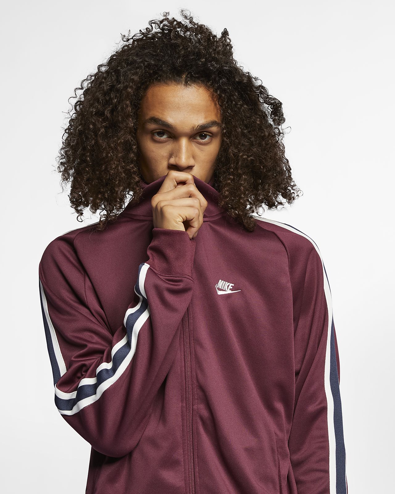A tribute to iconic football-ups from the '60s and '70s, the Nike Sportswear N98 Jacket zips you into comfort. It features contrasting stripes that extend from shoulders to cuffs for an old-school look.