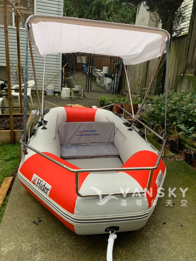全新未开包装2.6米拉丝底橡皮艇,规格2.6m*1.28m,乘坐4人,载重365kg,是湖钓、游玩的最佳选择。