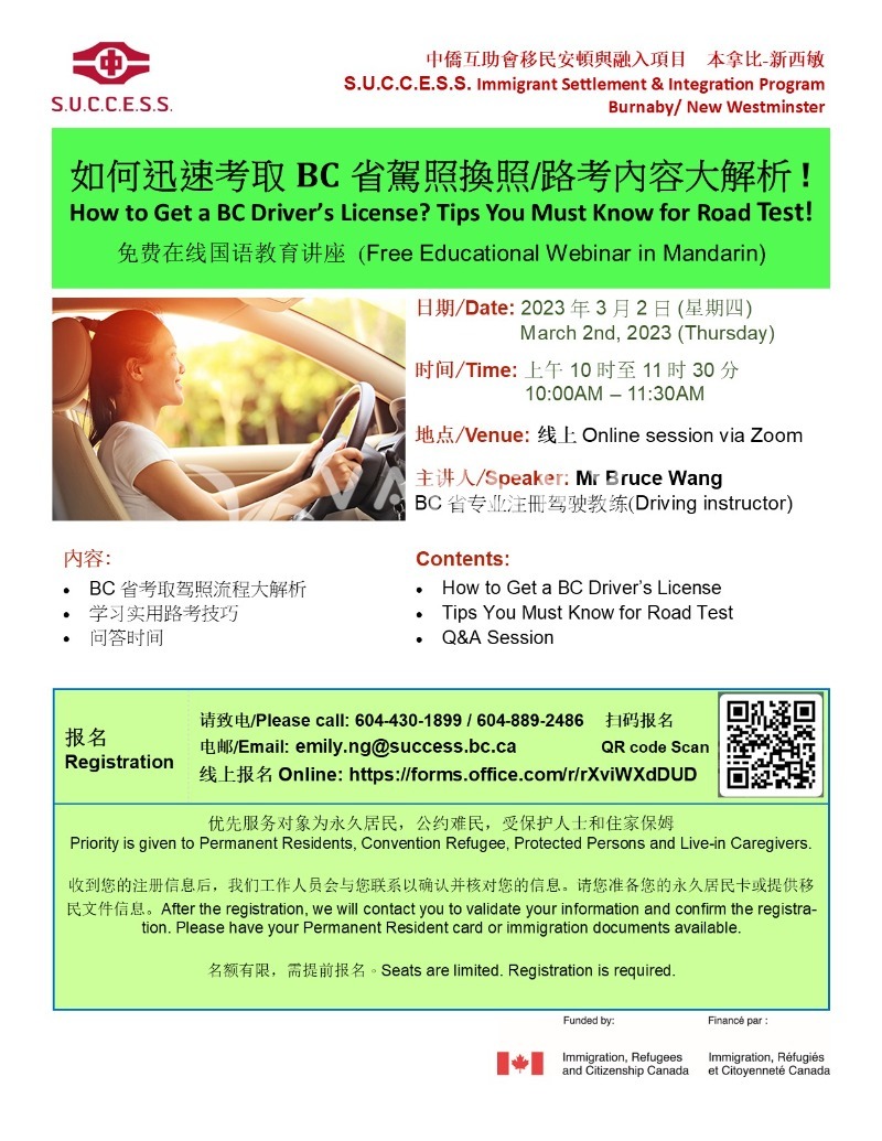 中侨互助会本拿比/新西敏移民安顿与融入项目邀请您参与本次Zoom线上讲座