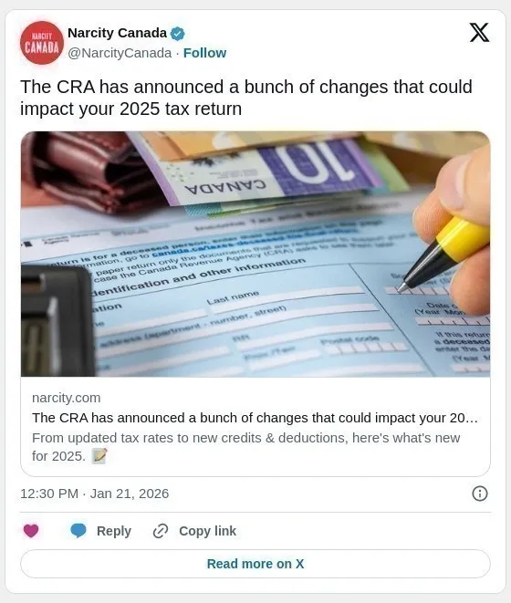 如果您一直盼望早点能够获得退税,现在就该做好准备了。加拿大的报税季即将到来,如果您尽早申报,就能比想象中更快拿到退税款。加拿大税务局 (CRA) 已确认,将于 2026 年 2 月 23 日正式开始接受 2025 纳税年度的报税申请。 届时网上报税通道将开放,如果您已注册直接存款,最快两周即可收到款项。因此,如果您一直想知道何时可以开始申报2025年的加拿大税,现在就开始规划是个好主意。您可以提前做好一些准备工作,确保在报税截止日期到来时一切就绪。 随着报税季即将在下月正式启动,加拿大税务局(CRA)近日公布了 2025 纳税年度的一系列最新调整,涵盖税率、抵免额、扣除项目以及线上服务方式等多方面内容。部分新规已生效,其他则将在今年陆续实施。以下是媒体NARCITY列出可能影响你在 2026 年春季报税申报的新规。 关键日期与截止时间2025 纳税年度的报税季将于 2026 年 2 月 23 日(周一) 正式开始,届时 CRA 将开放 NETFILE 系统。以下日期值得特别留意: 2026 年 3 月 2 日:RRSP、PRPP、SPP 的 2025 年度供款截止日 2026 年 3 月 2 日:雇主必须向员工发放 T4 表 2026 年 4 月 30 日:报税与缴税截止日 2026 年 6 月 15 日:自雇人士(及其配偶)报税截止日,但税款仍须在 4 月 30 日前缴清 联邦税阶与基本免税额(BPA)上调为应对通胀,CRA 将 2025 年的指数化调整率设为 2.7%,因此税阶门槛与多项不可退税抵免额均有所提高。2025 联邦税阶如下: 14.5%:应税收入前 $57,375 20.5%:$57,375 – $114,750 26%:$114,750 – $177,882 29%:$177,882 – $253,414 33%:超过 $253,414 基本免税额(BPA)调整: 收入 ≤ $177,882:BPA 为 $16,129 收入 ≥ $253,414:BPA 为 $14,538 中间收入区间将按比例调整配偶、受扶养人、护理者、残障、医疗费用等多项联邦抵免额也同步上调 2.7%。税率变化:最低税阶降至 14%2025 年最重要的变化之一是联邦最低税阶税率下调: 2025 年 7 月 1 日起:15% → 14% 因为只实施半年,全年采用 14.5% 混合税率 省级方面: 阿尔伯塔省:首 $60,000 应税收入税率降至 8%(原为 10%) 爱德华王子岛省:前四个税阶税率下降,最高税阶略升 新增补充税务抵免(Top-up Tax Credit)为避免税率下调导致不可退税抵免额减少,CRA 推出新的补充抵免: 若你的抵免额涉及超过 $57,375 的收入区间,将维持 15% 的抵免价值 阿尔伯塔省也推出类似机制,对超过 $60,000 的抵免额提供额外 2% 抵免  CRA 线上服务更新CRA 对线上账户进行了多项改进: 账户被锁或忘记密码时,可直接在线重设,无需致电 2025 年 7 月 15 日起,不再接受通过 EFILE 提交的代理授权 代理必须使用 “Represent a Client” 系统,用户确认后立即生效 替代访问流程取消 5 天等待期,只要代理提交正确文件即可即时获得访问权限 残障支援扣除(Disability Supports Deduction)新增可申报项目2025 年起,可申报的支援项目扩大,包括:替代输入设备护理服务、床位定位装置、数码笔设备、符合人体工学的工作椅、记忆或组织辅助工具、移动电脑推车、导航设备以及服务性动物多数项目需医疗专业人员证明,且仅限残障者本人申报。资本增值(Capital Gains)新规两项新规则可能惠及小企业主与合作社股东: 合作社转换(co-op conversion)出售股份者,可能符合新的资本增值扣除资格 小企业股份的替代股份购买期限延长,且“合资格小企业股份”的定义扩大,有助延迟资本增值 矿产投资税务抵免扩大若你投资矿产勘探相关的流通股份: 关键矿产勘探抵免(CMETC) 扩大至 12 种新矿物 矿产勘探抵免(METC) 延长至 2027 年 4 月 1 日  燃油附加税退税(农民)正式结束随着联邦燃油附加税于 2025 年 4 月 1 日 终止,农民燃油退税的最后适用年度为 2024–2025。海达瓜依(Haida Gwaii)重新分类自 2025 年起,海达瓜依从“中间区”改为“北部地区”,居民可享受更高的北部居民扣除额,包括居住与旅行费用。  闲置房屋税(UHT)取消联邦政府宣布,自 2025 年起,正式取消闲置房屋税: 2025 年及以后无需缴纳 UHT,也无需提交申报 但 2022–2024 年的申报义务仍然存在,未申报者仍可能面临罚款 以上信息仅供参考,请以加拿大税务局公布的信息为准。