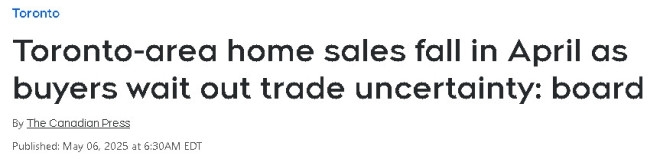 春季已接近尾声。加拿大最大城多伦多房地产市场依然低迷,5月份成交量创二十多年来新低,房价全线走软。 但一个回暖迹象是,经季节性调整后,大多伦多地区5月销售额和价格与 4 月份相比略有上涨,5 月份销售额连续第二个月增长。  难道市场真的要回暖了?! 多伦多地区房地产委员会(TRREB)周三(6月4日)发布的新报告显示,5 月份大多伦多地区房屋成交6244 套,与去年同期相比下降了 13% 这是自 2002 年以来 5 月份的最低销售数据(除 2020 年 5 月疫情封锁开始后的情况外)。  2002 年至今20多年间,该市人口增长了 35% 以上。   销量并未止跌,价格也一样。大多伦多地区的平均售价为 110 万加元,同比下降 4%。  图自:Toronto star TRREB首席信息官Jason Mercer表示:“与去年相比,今年的购房成本更低。平均售价更低,借贷成本也更低。在其他条件相同的情况下,销售额应该会比2024年有所增长。问题在于缺乏经济信心。”  随着年度销售量持续下降,新房源数量激增——5 月份数量已接近 22000 套,同比增长 14%。  销售量与新挂牌量之比为 28%,表明目前是买方市场,也就是说买家拥有更多的谈判能力和选择权。   不过报告称,经季节性调整后,销售额和价格与 4 月份相比略有上涨,5 月份销售额连续第二个月出现增长。  春季通常是房地产市场的繁忙时期,但美国贸易战的不确定性抑制了销售并损害了消费者信心。   默瑟表示:“一旦家庭确信与美国的贸易稳定将会建立,和/或存在减轻我们对美国依赖的真正选择,房屋销售就会回升。” 美国总统唐纳德·特朗普于周三将钢铁和铝关税提高一倍,这将对加拿大各行各业造成重大冲击。  但默瑟表示,“进一步降低借贷成本对购房者来说也是个好消息。”   但6月4日,加拿大央行宣布维持当下基准利率不变。默瑟表示,如果央行降低基准利率,将对家庭提高抵押贷款承受能力产生重大影响。   在多伦多,半独立式住宅领跌房价,同比下跌 8.4%,其次是公寓(下跌 7.3%)、独立式住宅(下跌 5.6%)和联排别墅(下跌 3.3%)。   然而,半独立式住宅销售降幅最小,为 0.3%,而独立式住宅和公寓的销售降幅分别达到 10.6% 和 25%。  默瑟表示,多伦多的半独立式住宅库存量较低,因此,当有几套房屋的售价明显低于或高于标价时,数据就会出现偏差。他还补充说,他会对某些销售量不高的细分市场保持警惕。