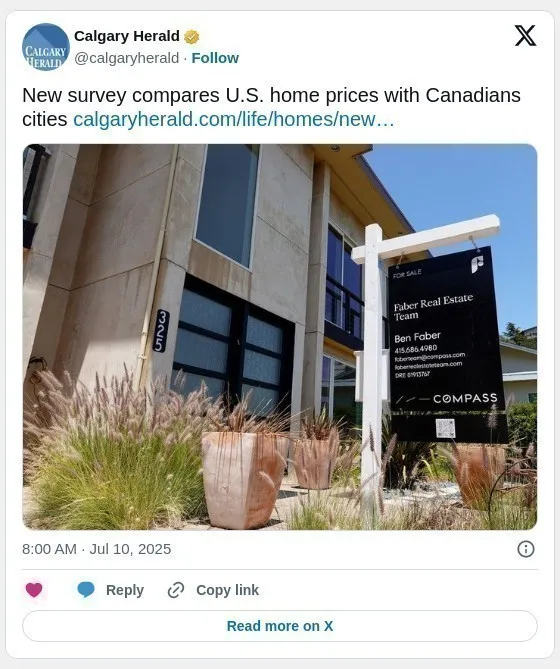 加拿大全国房地产公司Zoocasa最近发布的一项报告对比了多座加拿大城市与美国城市的房价,通过对比卡尔加里、温哥华、多伦多与美国几座主要城市的房价,揭示了加拿大部分城市住房市场的高昂价格,尤其是在温哥华和多伦多这些大城市。 温哥华房价几乎是波特兰的三倍温哥华和多伦多的房价差异则更加剧烈,尤其是与美国的一些城市相比。温哥华市(不包括大温地区的其他市镇如素里和本拿比)与美国俄勒冈州的波特兰市进行了对比。两座城市的常住人口大致相同,约为66万人。温哥华的单户独立住宅中位数价格接近137万加元(约合186万加元),而波特兰的中位数价格仅为59.1万加元(约合80.4万加元)。同时,温哥华公寓的中位数价格为51.7万加元(约合70.4万加元),而波特兰公寓的中位数价格则为32.5万加元(约合44.2万加元)。这一差距显示出温哥华房产市场的高昂价格。 多伦多房价远超芝加哥在与芝加哥的对比中,报告发现多伦多的单户住宅中位数价格更是芝加哥的两倍多。多伦多的单户住宅中位数价格约为102万加元(约合139万加元),而芝加哥的单户住宅中位数价格为41万加元(约合55.8万加元)。对于那些考虑在多伦多购买住房的人来说,这一价格差距无疑是巨大的。尽管多伦多公寓的中位数价格高于芝加哥,但差距没有单户住宅那样显著。多伦多的公寓中位数价格为44.5万加元(约合60.6万加元),芝加哥则为31.6万加元(约合40.3万加元)。卡尔加里房价高于达拉斯尽管卡尔加里和达拉斯在人口和经济上有许多相似之处,尤其是在能源行业的推动下,但一项最新的报告发现,二者在住房市场上的差异却十分明显。报告指出,卡尔加里单户独立住宅的中位数价格为56.4万加元(约合76.8万加元),而同样作为能源驱动城市的达拉斯,单户住宅的中位数价格则为40万加元(约合54.4万加元)。这意味着卡尔加里买家的住房支出比达拉斯买家要多出约40%。不过,达拉斯的公寓价格更高,该市公寓的中位数价格为25.6万加元(约合34.8万加元),而卡尔加里的公寓中位数价格为24.5万加元(约合33.7万加元)。Zoocasa这一对比报告为购房者提供了更全面的视角,也可能促使一些买家在做出决策时更加关注加拿大市场的高房价现象。