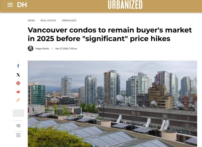 历经近乎大半年的大温房市寒冬后,明年地产市场将会如何?别着急,有些房型还有下跌的空间! 加拿大帝国商业银行资本市场 (CIBC Capital Markets) 的分析师本周发布了一份预测报告,预测房地产市场的疲软状态可能持续到 2025 年,然后在 2026 年出现反弹,价格再次上涨。 CIBC称,2025年是房价的“升空倒计时”。 2025年大温公寓市场低迷 联排、独立屋引领复苏 他们2025 年住房市场的展望中,经济学家本杰明·塔尔 (Benjamin Tal) 和凯瑟琳·贾奇 (Katherine Judge) 概述了两个市场的情况:联排、独立屋低层住宅将率先反弹,而公寓市场则面临更加艰难的道路。     Tal和Judge 指出:“低层建筑(联排、独立屋等)市场将率先受到抵押贷款利率下调的影响,由于库存仍处于历史低位,需求增加将导致房价上涨。” 相比之下,高层公寓市场预计将继续承压。供应过剩、投资者兴趣下降和负担能力担忧是主要挑战。创纪录的公寓竣工量预计将加剧本已低迷的市场,使转售价格继续承压。Tal 和 Judge 解释说:“过去几个季度,高层公寓市场一直处于衰退状态,很可能在 2025 年的大部分时间里仍处于亏损状态。” CIBC的分析师写道:“到2026年中,目前公寓预售市场低迷导致的供应不足以及建筑活动增长极其缓慢,与因利率降低和抵押贷款法规变化导致的需求增加发生冲突,从而导致价格压力上升。” CIBC认为,作为全美房价最高的市场之一,温哥华目前新上市的房屋数量多于售出的房屋数量,市场仍有价格走软的余地。 2025年这一年,温哥华的公寓市场仍将经历冷淡期,也就是说,这一年公寓价格还有下降的空间。 然而,2026年起,温哥华的公寓市场将重新恢复活力,价格开始上涨。“鉴于目前的预售活动(未来供应量)处于数十年来的最低水平,新发现的需求将面临严重的供应不足。市场失衡将在2026年或2027年充分显现,并可能导致公寓价格面临巨大的上行压力。” 与此同时,CIBC认为,移民数量的减少幅度不会像联邦政府所认为的那样大,这将给住房供应带来比官员们认为的更大的压力。 明年大温房价或上涨7% 另一方面,大温和大多伦多两个地区销售量惨淡,但房地产协会对于明年房市整体价格还是相对有信心的。根据 Re/Max Canada 的2025 年住房市场展望报告,降息和消费者信心增强可能会推动全国性质的销售活动。     需求增加和供应受限的结合预计将使全国平均住宅销售价格上涨 5%。   该报告调查了加拿大37个地区,并预测其中33个地区的销售活动将增加,一些地区预计增幅高达25%。 全国各地的 Re/Max 代理商指出,首次购房者(在81%的调查地区被视为市场活动的主要驱动力)将从这些条件中受益最多。 报告预测,到2025年,44%的加拿大房地产市场将转向卖方市场。这一趋势在加拿大西部尤为明显,预计该地区的住宅价格将上涨3%至10%。例如: 埃德蒙顿:预计房价将上涨10%,Re/Max 预计将有大量来自卡尔加里的购房者涌入埃德蒙顿,他们原本无法负担得起房费,希望以可承受的方式进入或投资房地产市场。 大温哥华地区:预计价格上涨7%,销售额预计增长20%。 安大略省是加拿大最大的房地产市场,预计全省房价也将上涨,从多伦多的0.1%到 Simcoe 的10%不等。 预计多伦多和密西沙加、基奇纳-滑铁卢等其他城市中心将出现均衡的市场状况,而萨德伯里和约克区等地区可能会有利于卖方。     在加拿大大西洋地区,每个接受调查的市场的价格预计都会上涨,其中新斯科舍省特鲁罗和科尔切斯特以及纽芬兰省圣约翰的价格将显著上涨8%。 你认为明年大温的房价市场还会有上升空间吗?