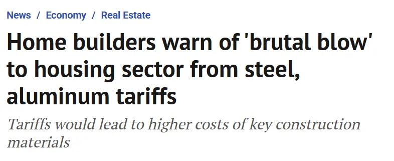 由于受美国金属关税影响,加拿大房价恐会飙涨。           Financial post报道称,一些加拿大房地产开发商表示,美国即将对加拿大钢铁和铝征收关税,这可能会对房地产行业造成不利影响,因为主要建筑材料成本将会上升。           图自:Financial post 安大略省房屋建筑商协会代表超过 4,000 家提供开发和翻新等服务的公司。该协会表示,关税可能导致经济放缓并导致住宅房地产投资减少。           协会首席执行官斯科特·安迪森警告说,这可能”对住房行业造成沉重打击,从而影响住房负担能力。“           他在接受采访时表示:“当你在一个已经饱受低利润、高利率和高投入成本困扰的环境中引入像贸易关税这样戏剧性的因素时,成本上涨的可能性……会让建筑商非常紧张。”           “这只会让开发市场陷入混乱。”           美国总统唐纳德·特朗普周一(2月10日)签署了一项行政命令,自 3 月 12 日起对进口到美国的钢铁和铝征收 25% 的关税,加拿大未能豁免。           对此,加拿大商会首席执行官坎迪斯·莱恩表示,此举“在很多层面上都是错误的”。           莱恩表示,特朗普的决定“明确表明,永久的不确定性将持续存在。”           此前,特朗普威胁对加拿大进口产品征收 25% 的全面关税,能源征收 10% 较低关税,这些措施推迟到至少 3 月 4 日。               美国国家贸易管理局数据显示,美国是加拿大最大的铝市场,去年加拿大向美国出口了超过 300 万吨铝。           BMO 经济学家罗伯特·卡夫西克 (Robert Kavcic) 表示,去年加拿大对美国的钢铁和铝出口总额为 350 亿美元,约占 GDP 的 1%。           安迪森表示,建筑材料成本的上涨将推高加拿大住房价格,而目前该行业已经难以跟上通货膨胀导致的成本上涨。     图自:Financial post       他说,木材等材料的投入成本在疫情期间上涨,并且从未恢复到疫情之前的水平。           安迪森说:“当加拿大产品对其他市场(例如美国边境以南的市场)的吸引力降低时,产量就会减少,因为加拿大以外的市场已经萎缩。”           “当你开始减少生产量时,国内销售成本显然会上升。”           他表示,潜在的报复性关税也可能导致住房价格上涨,并指出每年约有价值 200 亿加元的加拿大钢铁和铝产品运往边境以南。           除了钢铁和铝之外,对水泥、石膏和木材等多种建筑材料征收双向关税可能会将成本推高到“一个疯狂的水平,任何建筑商都无法生存”。
