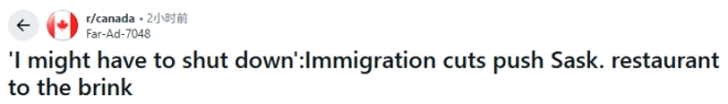 萨斯喀彻温省Lloydminster一家小餐馆的厨房里,飘满了正宗印度料理的香味与声响。 金属勺子敲击炖锅的声音此起彼伏,午餐订单不断涌入,香料的味道在空气中弥漫。豆蔻、丁香和藏红花的味道让常客们坚信,他们再也吃不了别家的味道了。 然而,这家印度餐馆Indian Kitchen的老板Ravinder Kaur却满是担忧——这一切可能即将消失。 “我可能不得不关掉这家餐馆。我们已经缩短营业时间,因为我不想让两位厨师过度劳累,”Kaur在接受采访时说。“我可能不得不放弃我的梦想了。”   移民限制与配额减少,意味着她可能在几周内失去这两位熟练厨师,迫使餐厅关门。   “我们的生意很好,但很难找到好的厨师,没有厨师你就开不下去。我们经营的是一家正宗的印度餐馆,不是随便谁走进来就能上手的,”Kaur说。 Kaur于2010年以留学生的身份来到加拿大,从加油站打工做起,逐步做到餐厅经理,最终开了自己的餐馆。在过去10年里,她在阿尔伯塔省和萨斯喀彻温省协助开设了11家分店,但其中7家已因人手短缺被迫关闭。 “我一直想有一天能成就一番事业,而开自己的餐厅就是我的梦想。”她说。 熟练厨师恐失去工签 她的两位厨师Arvind Kaintura和Bhupendra Rawat都已在加拿大工作超过7年,一直纳税、为当地经济做贡献。 然而,Kaintura的工签已于今年10月到期。Rawat的工签也将在明年1月到期。 “这份工作就是我的事业、我的生活、我的家庭。一切都依赖于这份工作,”Kaintura说。他表示自己等待工签延期和省提名申请的进展已经超过一年,如果无法获得批准,可能被迫在下个月返回印度。 “有时我会陷入抑郁……彻夜难眠,”他说。“如果我的签证没有获批,我就只能回印度,可能就是明年1月左右。” Rawat自2018年以来一直居住在加拿大。他最近被诊断出患有癌症,他说失去工签将意味着失去的不仅仅是工作。 “我一直在我孩子的未来,也在想我自己的情况,比如我的治疗,”他说。“学校已经发来消息说,如果工签到期,孩子们也不能继续上学。” Rawat的三个孩子——12岁的Ridhima、7岁的Tanvi和一个蹒跚学步的幼Ava ——大部分时间都生活在加拿大。 “我喜欢这里的学校和朋友。我想在这里学习,将来在加拿大成为一名律师,”12岁的Ridhima说。“如果必须回印度,我会感觉非常难过。我不会读也不会写印地语,也不知道那里的学校是什么样子。” Kaur表示她已经发布招聘广告,收到了100多份申请,但没有人具备制作正宗印度料理的专业技能。 她说,她已经缩短了营业时间,如果厨师被迫离开,她担心自己无法继续负担租金和供应商费用。 “我今天能有这家餐馆,不是因为我,而是因为他们,”她说。“我不能放弃他们,他们就是我的家人。” 更广泛的劳动力影响 加拿大独立企业联合会(CFIB)表示,类似的情况正在全国各地发生。 CFIB全国事务总监Christina Santini表示,移民政策的转变和对临时外国工人计划更严格的限制意味着许多依赖这些工人的企业可能不得不关门。 “五分之一的企业很可能会倒闭,因为他们将失去帮助他们的关键工人,”Santini说。 她说,失去熟练工人会迫使企业缩短营业时间或直接倒闭,最终导致加拿大人就业机会减少、消费者选择变少、服务等待时间变长。 “我们通常认为一个外国工人占了一个加拿大人的职位,不是这样的。有时他们实际上是互补的,”她说。“失去一个外国工人,占了一个加拿大人的职位。” Kaur说,她希望政府能够考虑让那些已经在加拿大扎根的家庭留下。 “我们都属于这里,”她说。“这些工人正在为经济做出贡献。他们是社区不可或缺的一部分。”