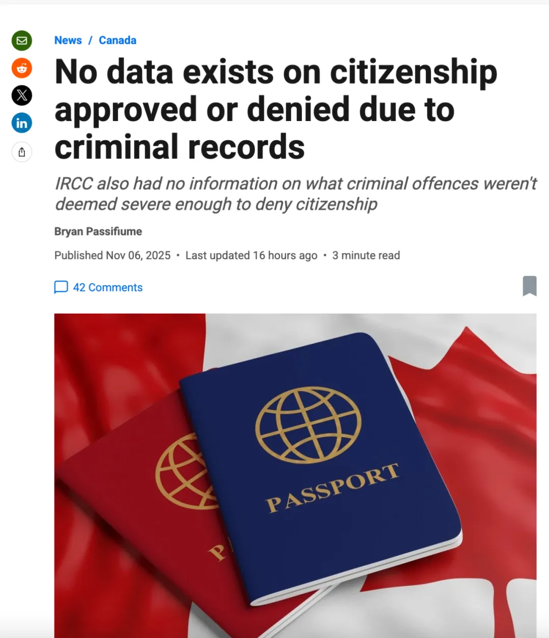 多伦多太阳报11月6日报道,加拿大移民体系没有关于拥有犯罪记录者获得或被拒发加拿大公民身份频率的数据。