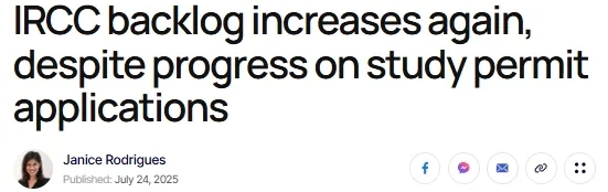 与此同时,学习许可申请的积压百分比在过去几个月里显著下降,从2月的45%降至6月的18%。这使其自2024年6月以来首次低于20%的积压目标。这表明等待学签的人的处理时间有所改善。