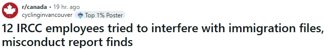 加拿大联邦政府去年裁减了近10,000名公务员,其中加拿大税务局(CRA)和移民、难民及公民部(IRCC)裁员人数最多。