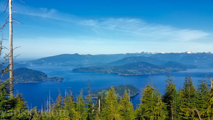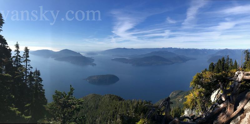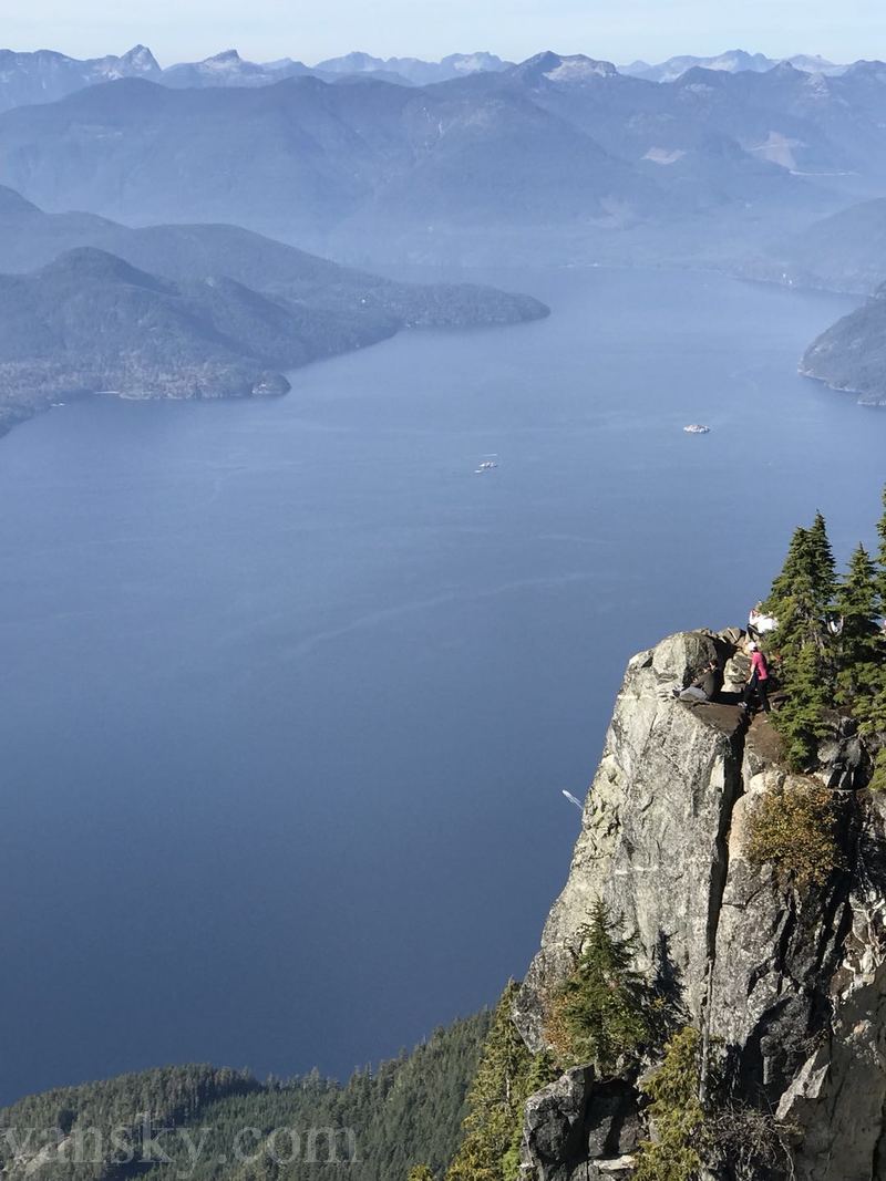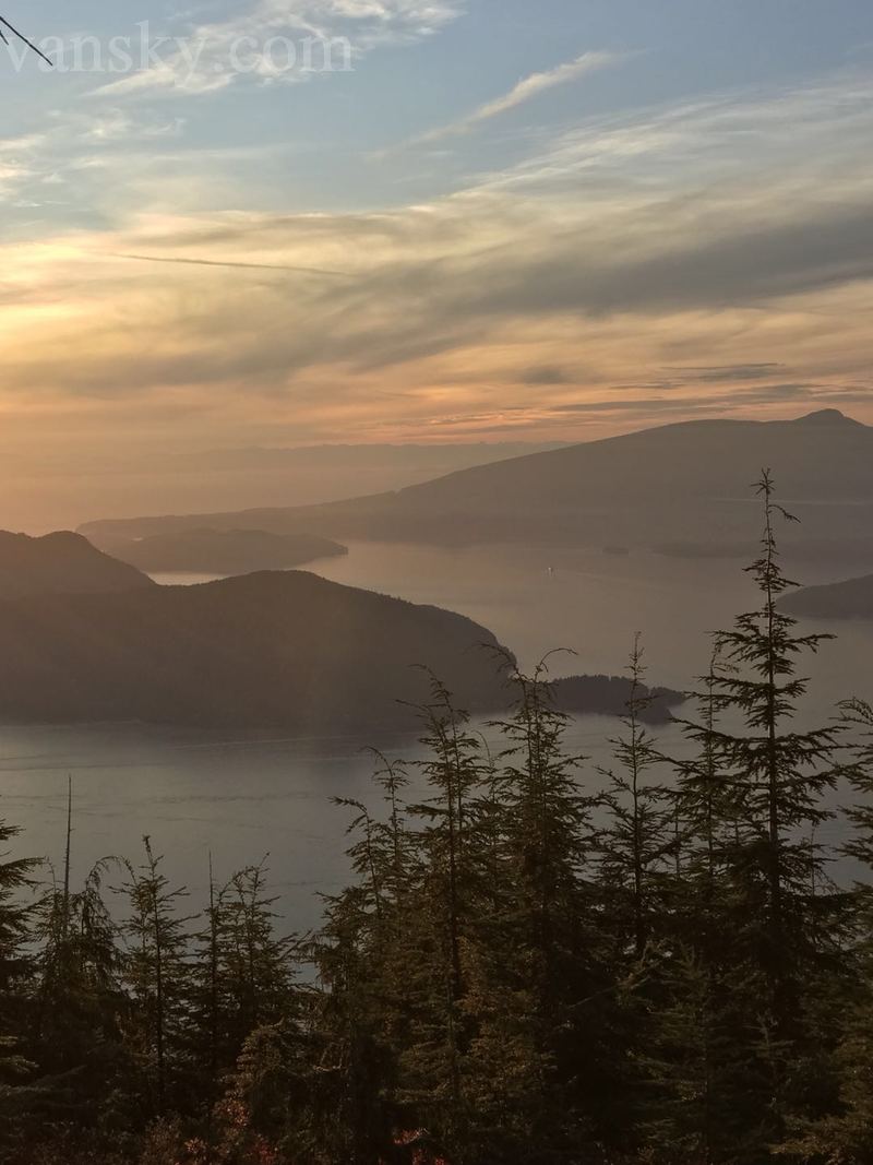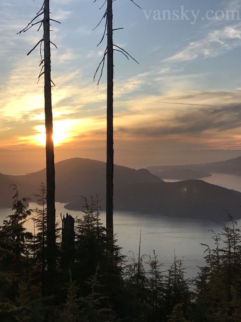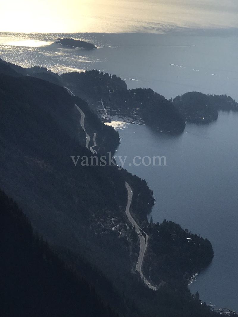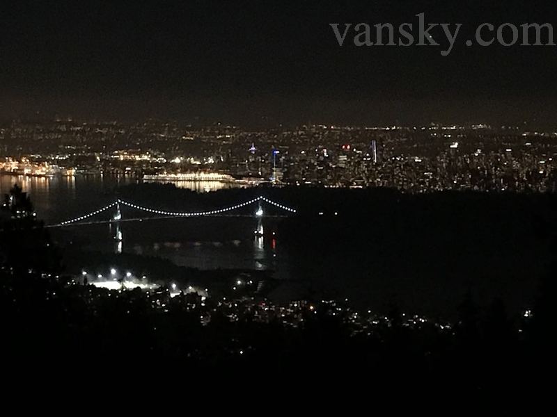 我们的丰富、超然的一天是在驱车下行的半山腰的一观景处打上的句号。那时已近9点,明月高悬,万家灯火,大温哥华地区灯火闪烁、璀璨一遍。最明显的是那离我们较近、跨海的狮门桥。