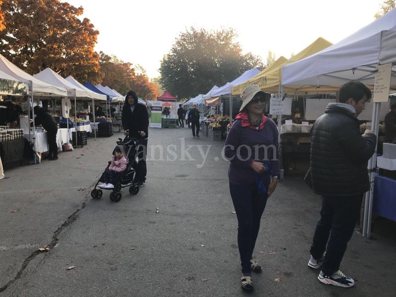 集市有30多个摊位,面对面地排着,摊主们正在的忙碌地做开张前的准备。这里是农户自售,卖的都是有机产品。人们三三两两的来了,排在自己心仪的摊位前。集市准时9点开市。在此之前,摊位即使准备停当,买者来了,也不开业,直至那轻微的铃声一响,买者才开始拣货。市集自然而有序,人们亲切不喧哗,产品货真价实。Julia是第一次到这里,买的葡萄的味道是别处无法比的,当摊主看到她的葡萄是9磅,主动建议她拿到10磅,说会更便宜。买下来,果然。
