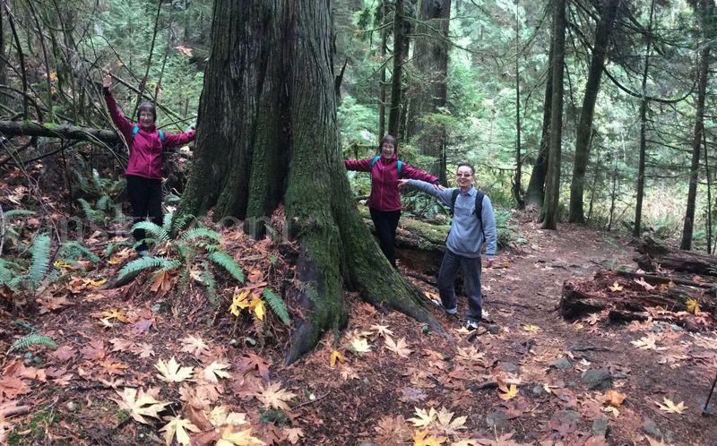下山的路上有很多西部雪松和道格拉斯枞树,有几棵树特别粗大、苍老。我们将新方法告诉了队友,大家就兴致勃勃试起来,一开始照得并不好,慢慢就照好了。