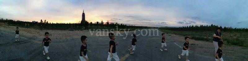 实际上这张照片,也是用全景功能照的,只不过是歪打正着。Julia是用全景照面前的景象,不知什么打岔,中途将立着的相机横过来了。结果出现了这个效果。