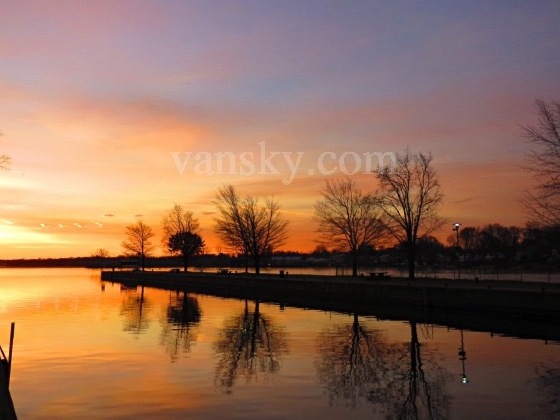 我们静静地站着,看着沉沉的夕阳映照在水面上。四周充满了大自然美妙的声音。几只鸟儿在安顿下来时轻轻地叫着,青蛙嘶哑的叫声,蝉儿响亮的嗓门,它们逐渐聚集在温暖而活泼的傍晚。