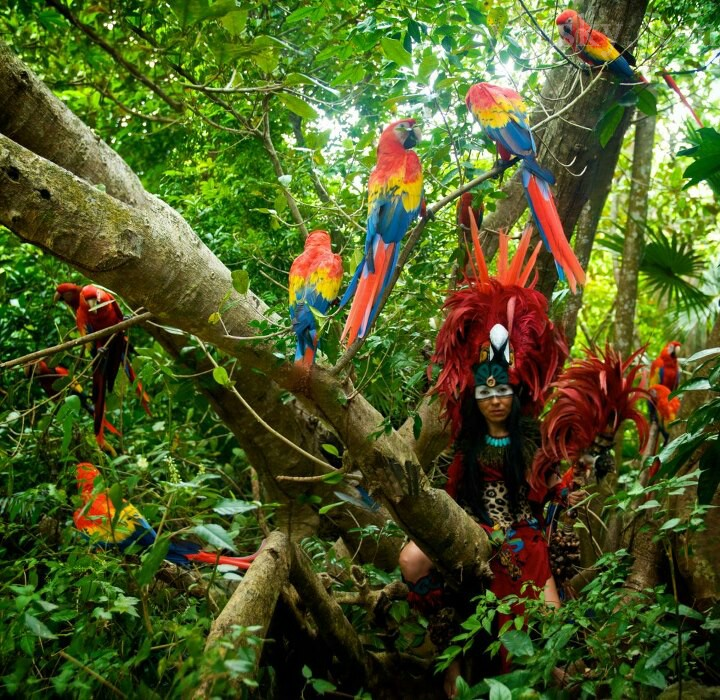 华彩秀的下半部分基本上都是西班牙式的墨西哥歌舞表演,虽然精彩,我却更喜欢有玛雅特色的场景,所以个人认为远不及华彩秀的上半部,但全剧结束时,剧场的上空放飞了许多羽毛绚丽的大鹦鹉,群鸟在舞台上盘旋飞舞,让人印象深刻。