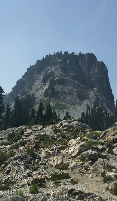 北面则是距离我们最近的桌面山,南面相对平坦,往南可去美术家之巅的山径小路行走,沿途欣赏贝克雪山和萨克森高山(印第安语Shuksan的意思即高山)的英姿,在此地支个画架,面对千峰竞秀的山峦,画出几幅佳作,不就成了美术家吗!“美术家之巅”,好名字!