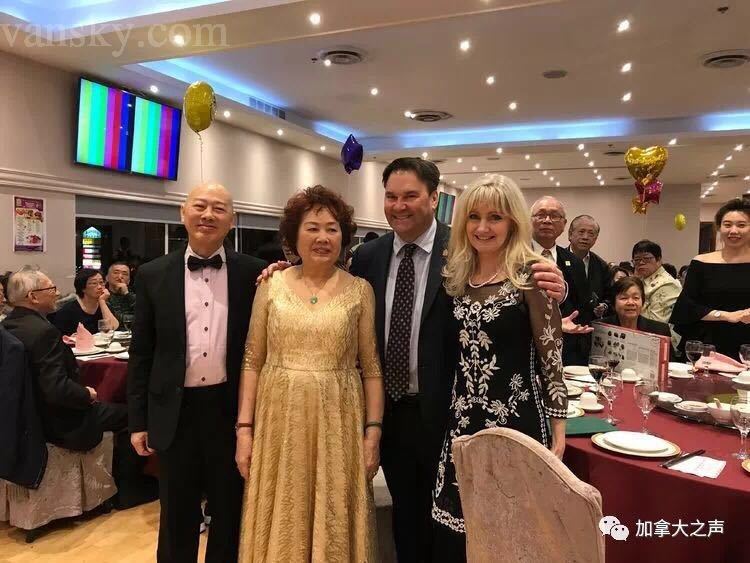 Janet等;前BC省副议长、联邦自由党国会议员候选人李燦明;加拿大华人联席会荣誉会长方君学亲自到塲送赠贺礼