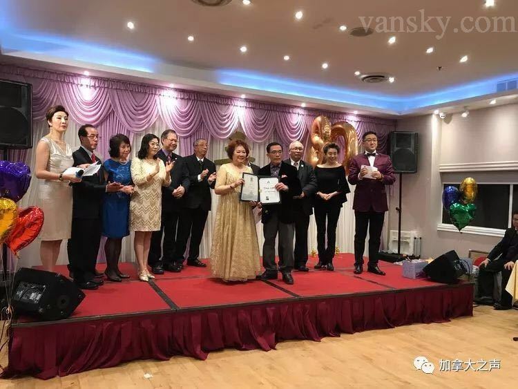 国会议员 Don David 、中华会馆前主席朱展伦、温哥华市前副市长李思远先后给林锦欢Tina颁发贺状