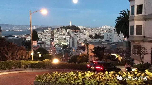仓促和紧张太太终于完成了她的第一次九曲花街的驾车之旅,车上可以远眺旧金山-奥克兰跨海大桥,灯火阑珊,城市的夜景尽收眼底,以前来过很多次大多是白天,这次感觉完全不同,虽然这次我不是驾车者,也许是夜幕降临的关系,光线的确比较昏暗,太太的紧张情绪还是感染了我……