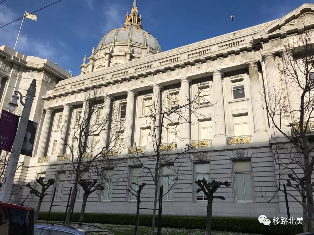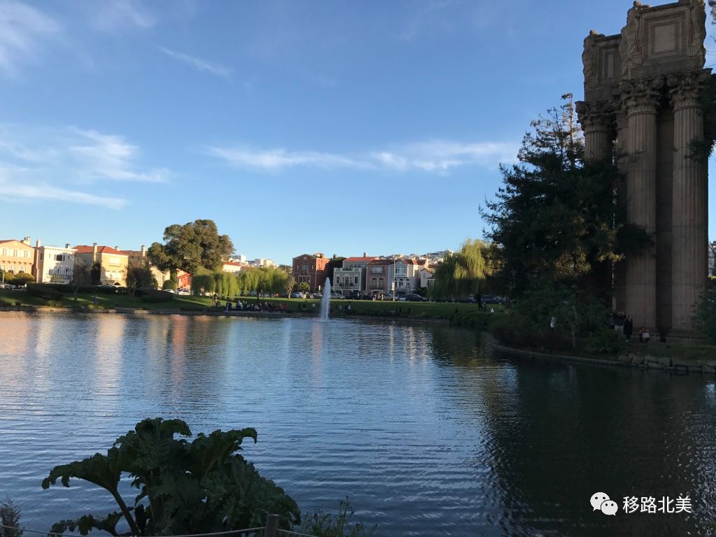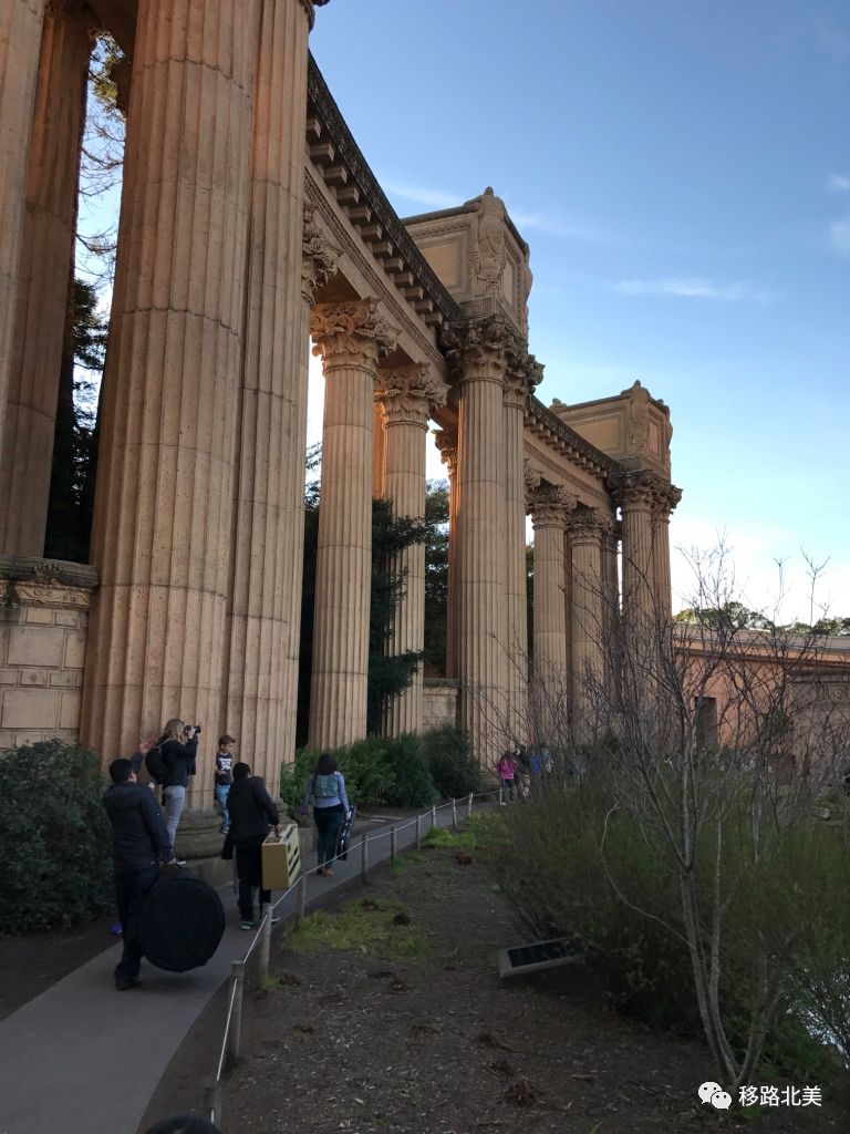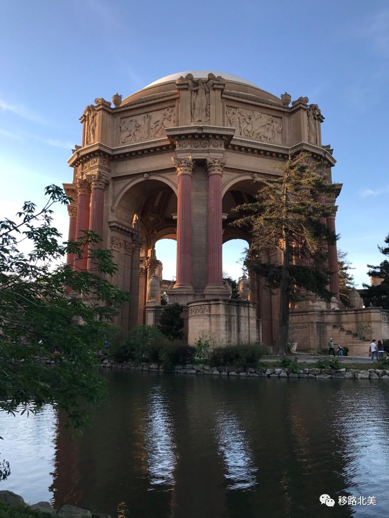 不觉中我们上了著名的101公路,穿越市中心,路过繁华的旧金山市政府,终于到了我们的第一站,旧金山艺术宮:按照年龄计算,艺术宫应该有整整100年的历史了吧,这个建筑群是为了百年前的万国博览会也就是现在的世博会建立的艺术圣殿,也是迄今为止少有保留时间最长的世博建筑之一