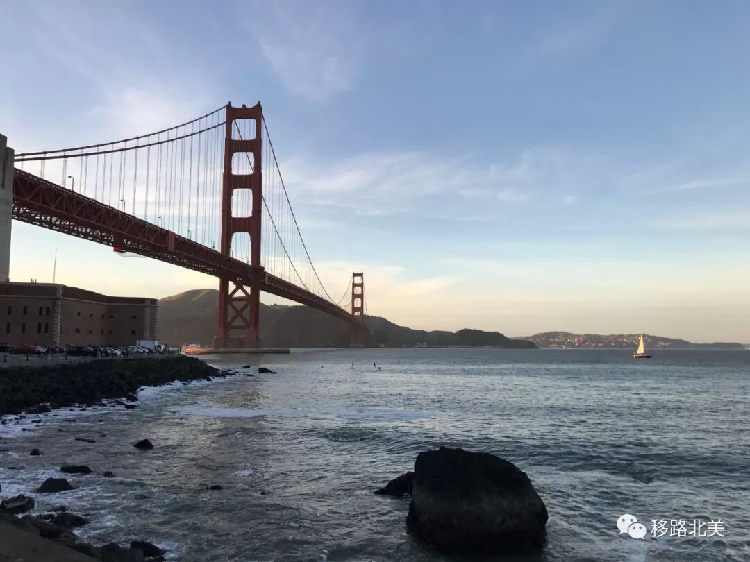 依依不舍的告别了艺术宫,不远处正是另外一个旧金山的标志性的金门大桥,很多来过还是没有来过美国甚至旧金山的人们,了解或者知道旧金山都是从这座百年大桥开始的。无论是宣传片还是很多好莱坞的电影大片,都常常见到金门大桥的身影,不仅仅因为这座大桥曾经是世界上最长的悬索桥,而且还是世界上最高的悬索桥墩,更因为建造金门大桥就如同保护艺术宮一样,旧金山全市的人民曾经为此可谓是全民举债,以自己的住宅、农场和公司抵押,建设这座举世闻名的大桥,所以从这个意义上讲,这不仅仅是一座普通的近80年的大桥,更是旧金山市民为了实现梦想的大桥,所以今天三藩、硅谷和硅谷中之所以有这么多的千亿美金的公司和富豪,就是因为他们一直秉承这当地市民不断挑战、创新和为梦想前行的旧金山文化。