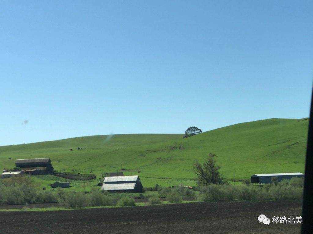 5号公路一进入加州就感觉路边的风光无限了,马路两边或是绵延不断的丘陵,或是铺满了翠绿的野草或者山花,或是一马平川绿色的田地,仿佛整个大地被铺了一张巨大的绿色地毯,层层叠叠,爽心悦目,忽然一群马儿,在草地上或安静的低头吃草,或扬蹄驰骋,好美的一副山水画啊……孩子们也被这样的景色所吸引,一会高呼,快看那面一群爸爸在吃草(属牛的爸爸);一会比着这座山高,哦,后面的这座更高……