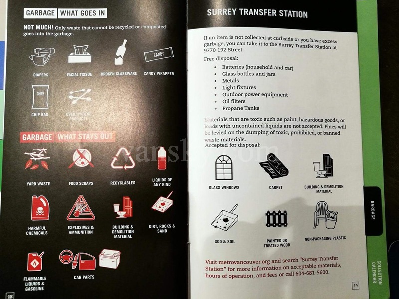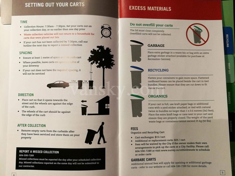 温哥华个城市的居民都可以向政府申请不同尺寸大小的分类垃圾桶(政府根据垃圾桶的尺寸大小,每年收取不同的垃圾收集费),以及各类小垃圾箱及垃圾分类袋(大部分免费,居民可以到社区的服务中心去领取。