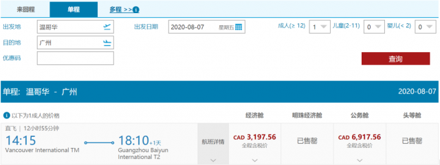 截至7月21日上午,南航订票官网显示,新增航班最早有票的,已经得到8月7日了,经济舱票价近$3200加币。