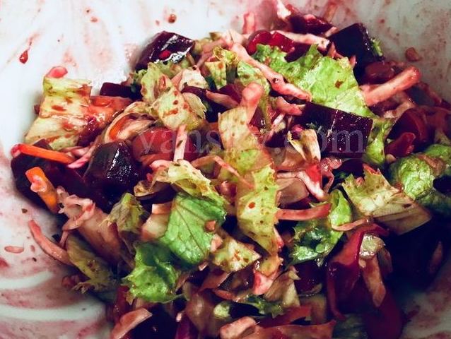 晚上到家,一大碗“甜菜根沙拉”放在厨房。