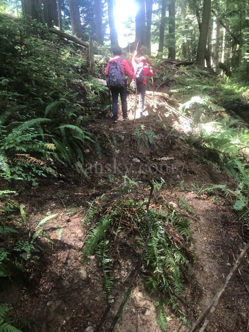 最近我们常在山中行走,在温哥华,山重水复,重岚叠嶂,如果不是依靠从Alltrails下载的地图,我们是走不远并很快会迷路的。我们在山中走的路,并不是已经踏出来的、成型的、可以称之为路,或是山路的路。我们走的路,是在丛林中、峰岭上刚刚探索出来的路,是只有少数几个人走过、依稀可辨、似路非路、要靠原始的结绳方法指示、并且可以不断改进的路。这种路,只在山中存在,或者只在北美山中的健行路线上存在。这是很特殊的路。七一加拿大国庆的时候,Patricia, 云城听雨和我三个人临西蒙双桥、近林谷双瀑、飞度悬桥、偷袭险峰(走了一段至少有两年没人行走的路),自己走出了一条环路,上载到Alltrails上去,也会是一条后人有迹可寻的路。
