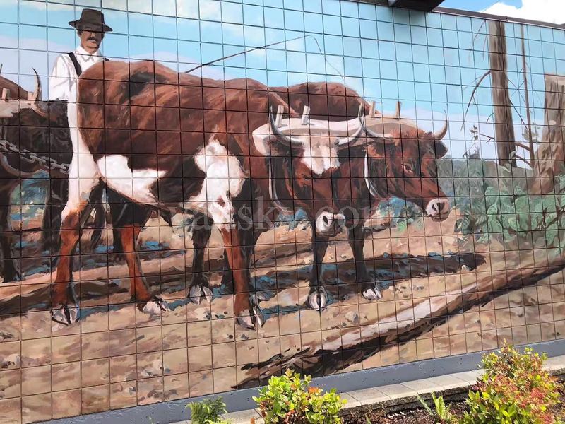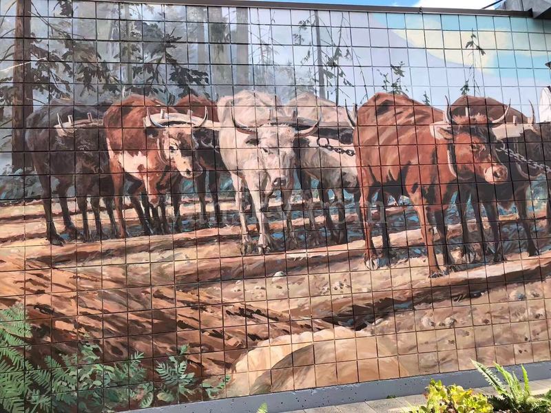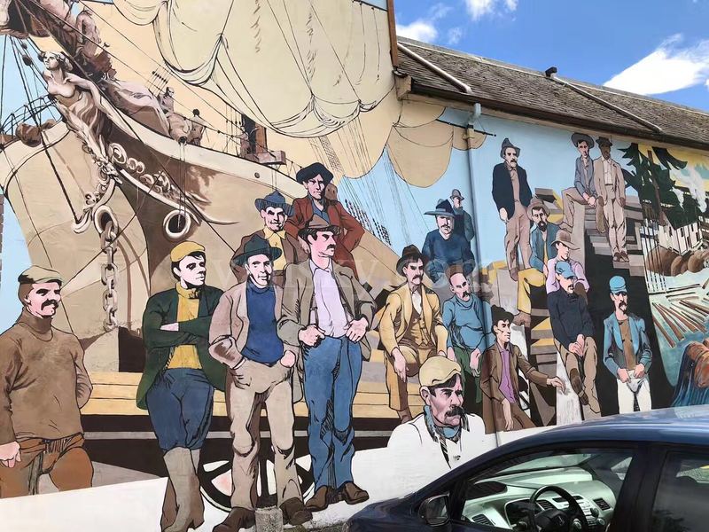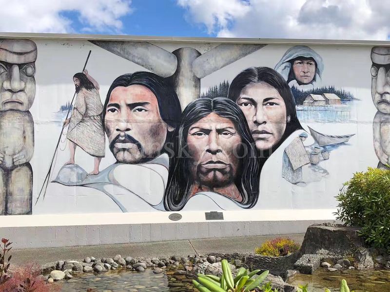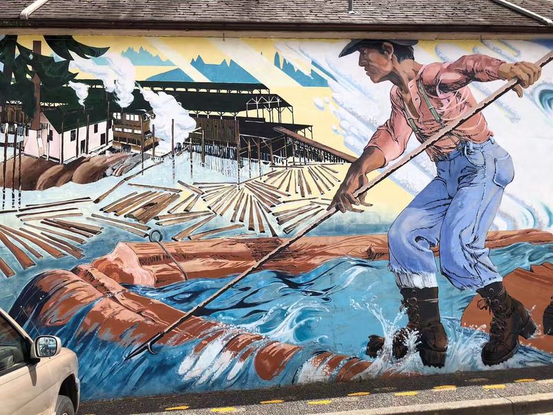 其实切梅那斯在我第一次去时,就有些名气了。切梅那斯曾以矿业,渔业和林业繁荣。她所在的科为恰谷(Cowichan Valley) 是第一民族世代居住的地方。自从英国人来了之后,中国人(中国人后来多去建铁路去了)、日本人、东印度人和英格兰人、德国人也陆续到来,一起生息劳作,思想文化交融。从上世纪70年代开始,由于切梅那斯赖以生存的传统产业难以为继,小镇渐趋衰落。1983年切梅那斯最大的工厂 ------ 锯木厂关闭,650人失业,两年后再开时,工厂已采用自动化生产线,仅雇用140人。在这期间,市长和市委会提出了一个另辟新径的小镇振兴计划,就这样在民众的创意和支持下,切梅那斯壁画镇诞生了。