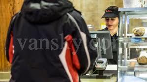 工作一段时间以后,她开始单独做前台。在TIM HORTONS的前台,你听到客人最多的一句话叫:DOUBLE、DOUBLE,意思是两个糖两个奶。