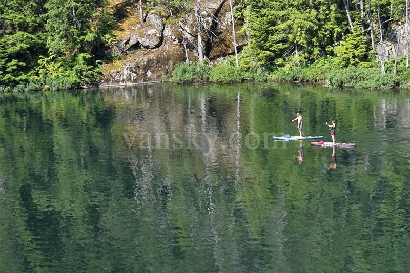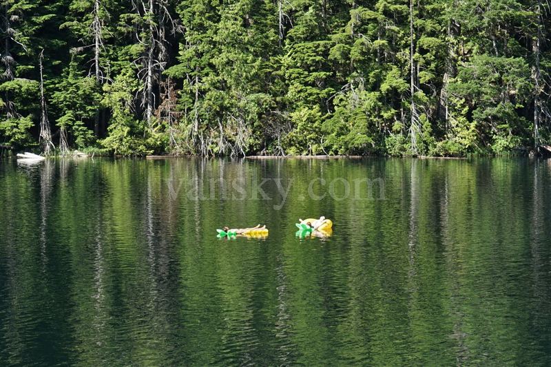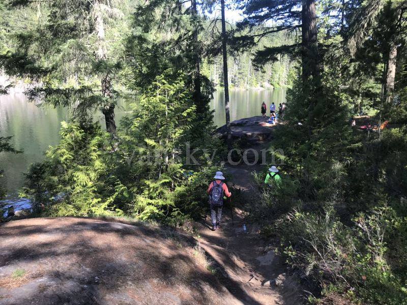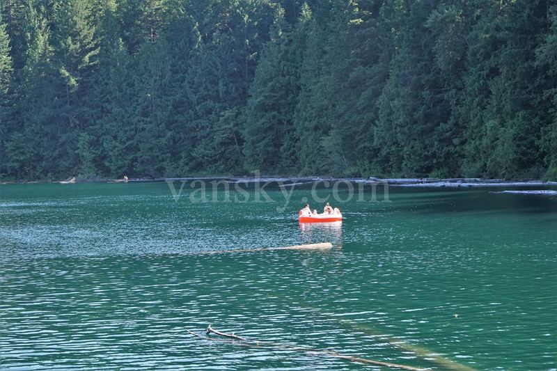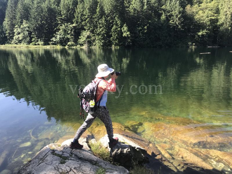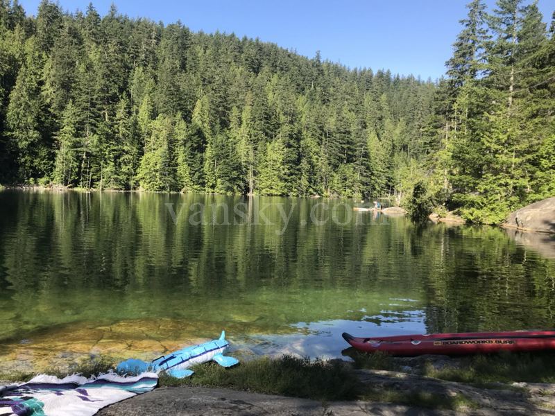 7月15日星期日,骄阳似火,气温很高。Patricia, 云城听雨和我去了两个湖:布罗姆湖(Brohm Lake )和猫湖(Cat Lake)。这两个湖都是在森林环绕中的一汪碧水,消暑的好去处。她们在斯夸米什(Squamish) 的北面15公里处,分别在海天公路的两侧,离威士勒 (Whistler) 较近。当天的温度在阳光下应有摄氏35度。