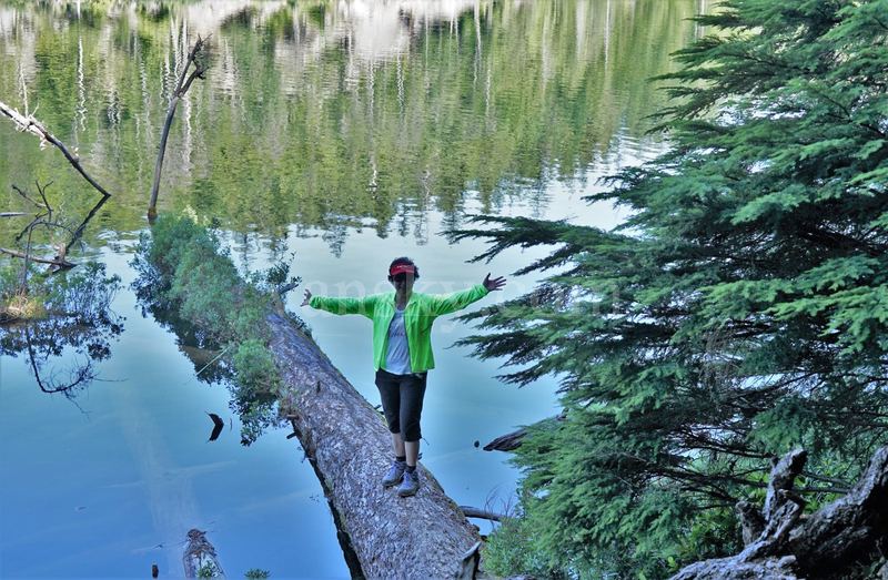 就连我们,在走山之余,也步上倒在湖中的大树的树干上,湖平如镜,清风送爽;据Patricia说,上次她们来时,还看到象走钢丝一样走绳索的,走不好,就掉到湖里。平静的湖,细看起来还很热闹。