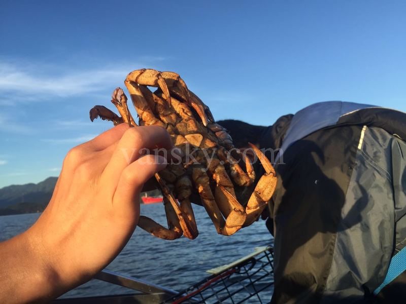 捞螃蟹在温哥华大家是见惯不惊了。我还清楚地记得的第一次捞螃蟹的情形,那是20年前的事情, 是和邻居去的,6点就出发了,从长长的栈桥上将装有鸡腿的铁笼子扔到水里,30分钟左右拉上来,居然有10来个螃蟹,你抓我咬的,十分生动。扔掉母的和不合规格的,还颇有斩获,当时的惊讶和兴奋是难于言表的。实际上Port Moody 的Ioco 海湾海滨公园是很美的,周围是树,对岸是山,水很静,早上显得清幽幽,但当时只顾捞螃蟹无暇顾及。回到家不久,又有一个朋友找我捞螃蟹,我又去了一趟。真是乐此不疲了。