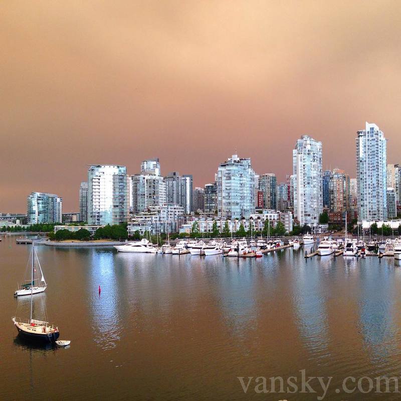 结果客户那边是8月13号飞机降落在温哥华,待了半个月,8月27号凌晨起飞。这半个月里每天都是灰蒙蒙的一片,一天蓝天都没看见。