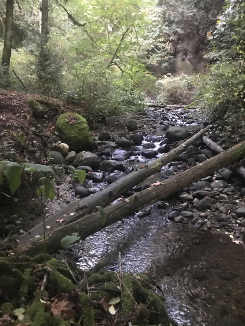 奔溪环路(Byrne Creek Ravine Loop Trail)在大温哥华的南本拿比,全长4公里。南本拿比地势高,远看就是一个山岗。奔溪环路是一个上宽下窄的环,高处近百米,低处仅十米。奔溪从中间流过。东南面高低之间是缓缓地下降,西北面则是陡然而降,有一近百米的土木的阶梯。由于奔溪在深壑中,很多人、包括住在附近的人,都不知道奔溪和奔溪环路的存在。反之,知道和去过的人,对她都赞不绝口。因为喜欢,我常去。昨天傍晚,我又去了。